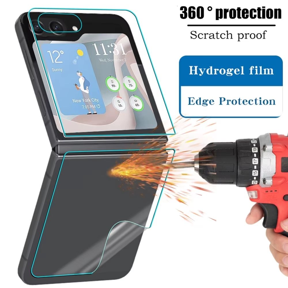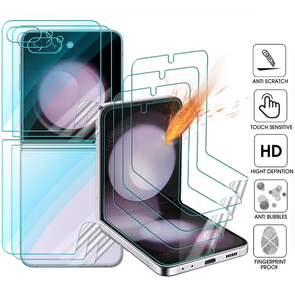 Shield your Samsung Galaxy Z Flip 7, 6, 5, and 4 with the AquaGuard hydrogel protector kit. This 9-in-1 set includes 3 front, 3 back, and 3 inner films for complete device coverage. Made from premium hydrogel, it resists smudges, prevents edge lifting, and preserves touch sensitivity for a flawless user experience. Water-resistant and shatter-safe, this ultra-thin film keeps every surface of your foldable protected while maintaining its sleek, responsive feel.