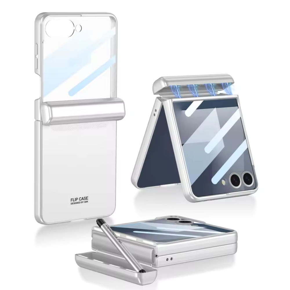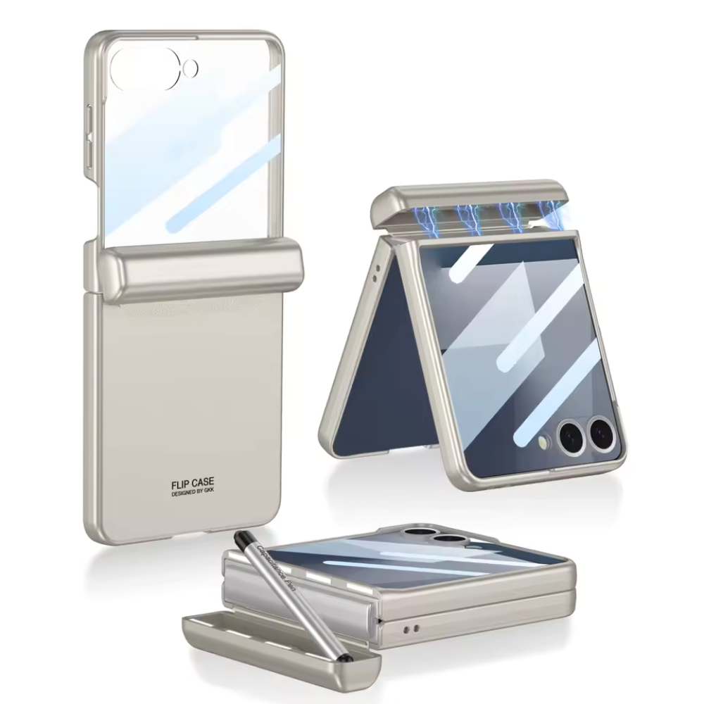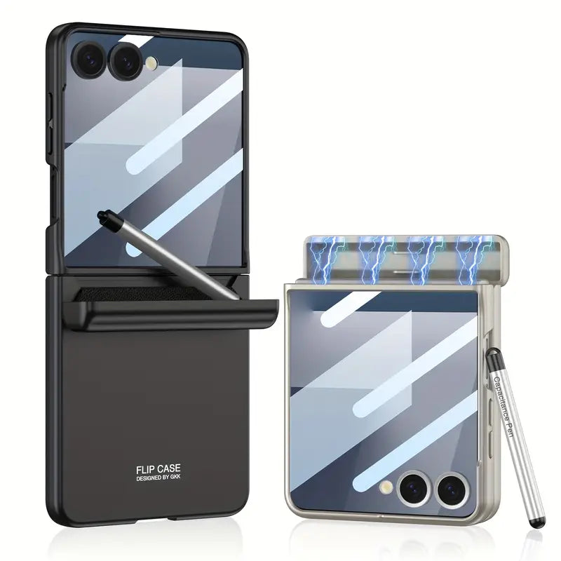 Protect your Samsung Galaxy Z Flip 7, 6, and 5 with the IronClad shockproof case. Built for maximum defense, it includes a mini screen protector, integrated touch pen, and reinforced magnetic hinge guard. The tough PC shell absorbs shocks and resists drops, while maintaining a slim, stylish profile. Combining durability with modern design, this case keeps your foldable safe and elegant in every situation.